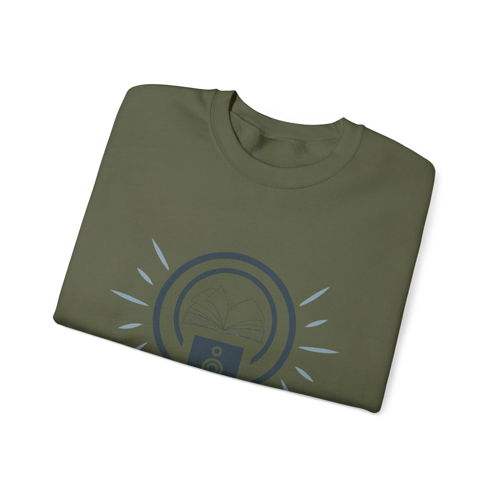Soft, warm, and quietly confident — this crewneck wraps listeners in the cozy glow of late-night chapters and favorite episodes. The minimalist podcast emblem sits center, a simple microphone and open book framed by gentle rays. It reads like an inside nod to audiobook addicts and podcast fans who trade screen time for stories. Wear it on morning walks with a thermos, during deep reading sessions, or while recording your own thoughts. The sweatshirt’s clean lines and subtle design keep the focus on comfort and connection — a wearable bookmark for those who live between the pages and the airwaves.